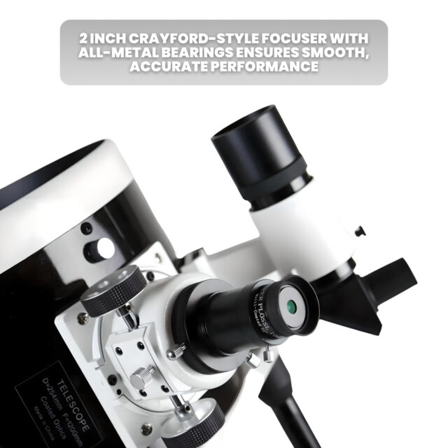 • Advanced Crayford focuser for precise control and smooth viewing.