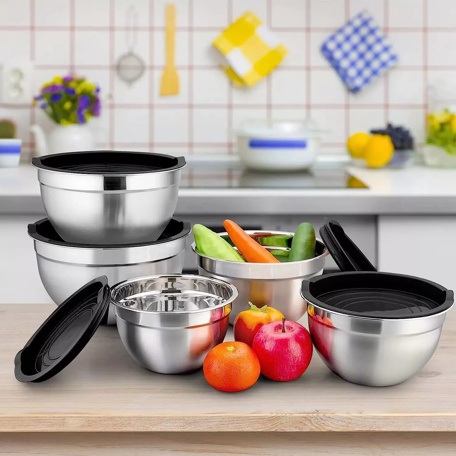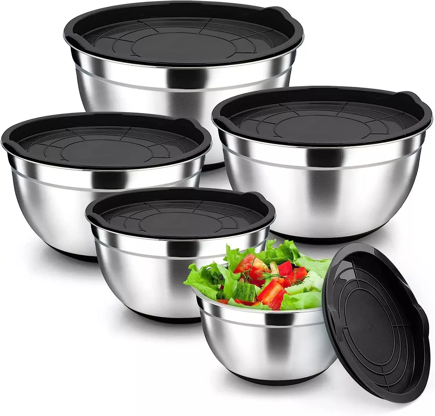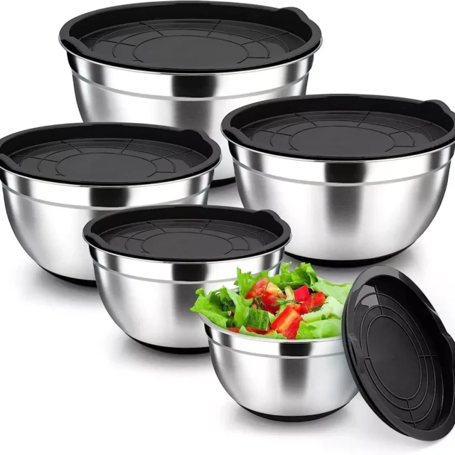 Unleash your culinary skills with our 10-Piece Stainless Steel Mixing Bowl Set, designed to make your kitchen experience seamless and enjoyable. Whether you’re a seasoned baker, a cooking enthusiast, or just starting your culinary journey, this set caters to all your kitchen needs. From mixing and baking to serving and storing, each bowl is crafted to offer convenience, durability, and elegance.