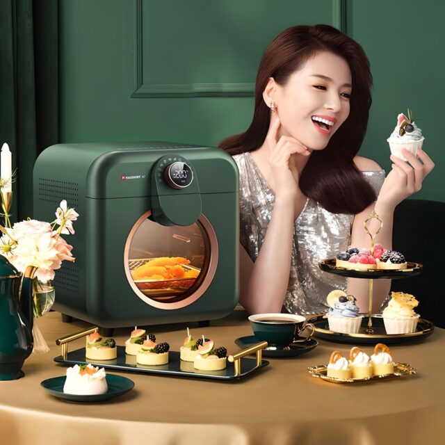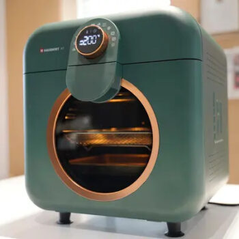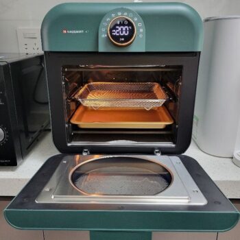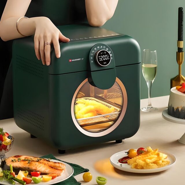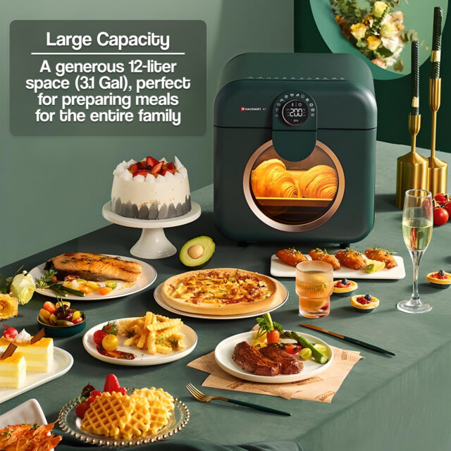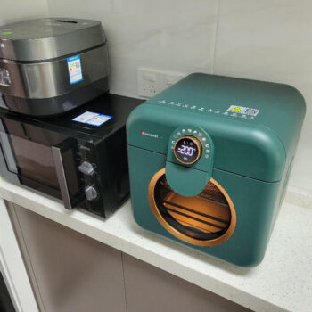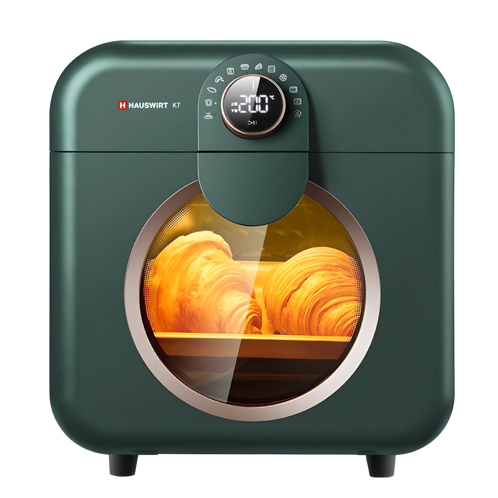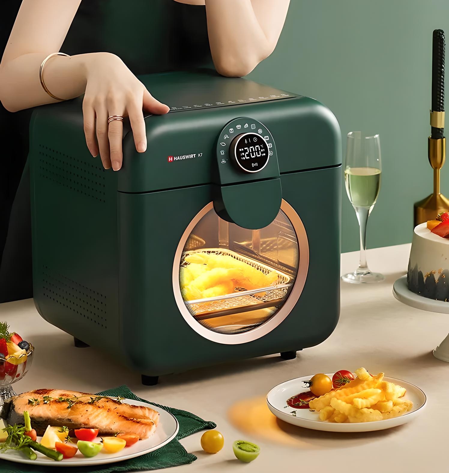 When I first laid eyes on this appliance, I mistook it for a retro vinyl record player because of its stylish old-school look. But to my surprise, it turned out to be a super versatile and practical food processor in a captivating dark green color that adds a touch of mystery and chicness to the kitchen! Let's talk about its air frying capability - it's not just for show; this thing is powerful! Whether it's baking, frying, fermenting, or drying, this gadget does it all, saving a ton of space in the kitchen by replacing a dozen other appliances. I tried making garlic ribs with the air fry feature, and it was amazing. It heated up instantly, no need to preheat, and the ribs came out perfectly crispy on the outside while juicy inside. Then there's the baking function, which I used to whip up egg tarts and cookies. The results? The egg tarts practically melted in our mouths, and the cookies were just the right kind of crispy and flavorful, rivaling anything you'd buy at a bakery. It manages temperature so well, ensuring everything is cooked evenly and looks fantastic. The device also boasts 12 easy-to-use menu settings that anyone can operate with a simple click. It's great for beginners because it has a visual window that lets you check on your food without opening it, making it super easy to see how your dishes are coming along. In summary, this all-in-one food processor, combining an oven and air fryer functionality, has completely transformed my daily cooking routine. It's fast, efficient, easy to use, and perfect for anyone who loves making delicious meals at home.