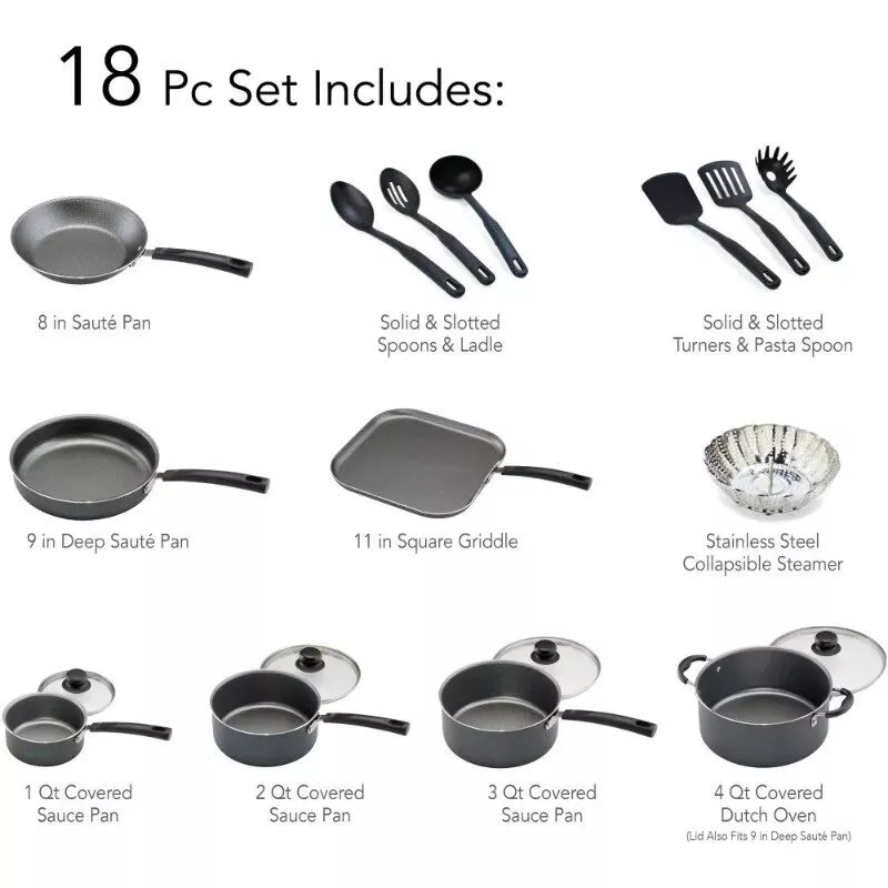 18-Piece Complete Kitchen Non-Stick Cookware Set