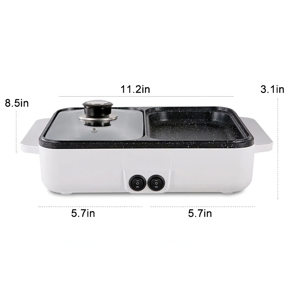 • 2-in-1 Design: Perfectly combines a BBQ grill and a hot pot, letting you cook, fry, and grill all in one device.