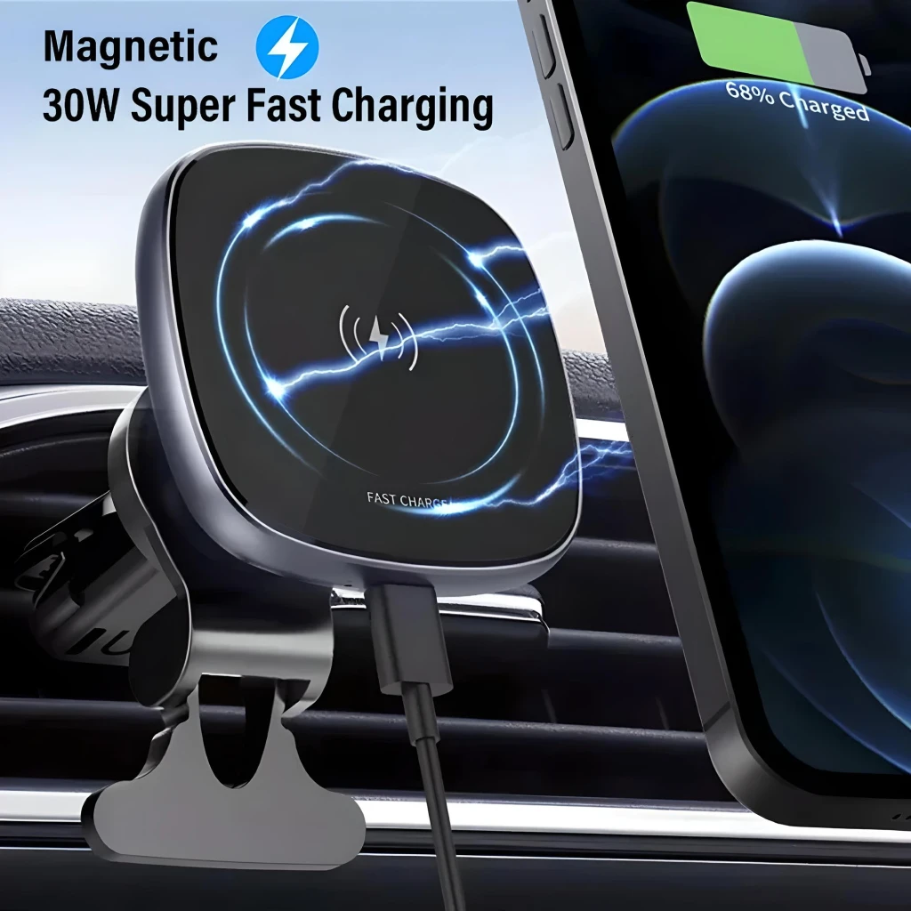 Modern life requires modern solutions. Introducing our latest 30W Magnetic Wireless Car Charger, designed to simplify your daily drives while keeping your iPhone powered up. Whether you’re commuting, on a road trip, or just out for a drive, let your phone stay within reach and always charged!