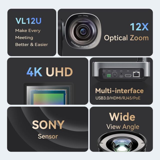 On the hunt for an extra cam for our shows, I stumbled upon the TENVEO-VL12U. Just like its predecessor, it's a winner, but now we're talking 4K goodness. The build quality's even better than before. It's got all the hookups we need: HDMI, RJ45, USB-C, you name it (+ RS232 and more). Comes with everything: wall mount, screws, plugs, a power adapter, USB 3.0 cable, a remote, and even a lens cap. Hard to beat what you're getting for the price. I'm all in on this cam, handing it a solid 5 stars. It's a beast!