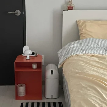 This trash can's design is smart 💡 and looks sleek with its well-thought-out lid. Love ❤️ how it closes smoothly, making it perfect for snug spaces. It's unobtrusive, blending into its surroundings. Compact enough for tight spots while maintaining a clean look in any room. The LED 🙌 countdown for the motion sensor is a clever feature, letting you know the closing time. Highly recommend for anyone seeking a minimalist yet functional addition to their room.