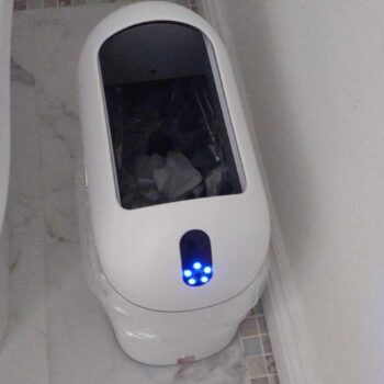 No more pets getting into the bathroom trash, thanks to this can. The sensor works well as long as the area’s well-lit.