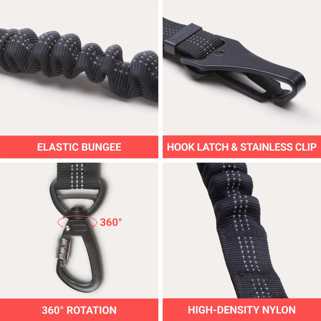 I'm really impressed by this product! Its anti-rust metal components ensure durability, while the shock-absorbing bungee protects my pet during unexpected brakes or falls. It's clear that it's built to last and provide reliable protection.