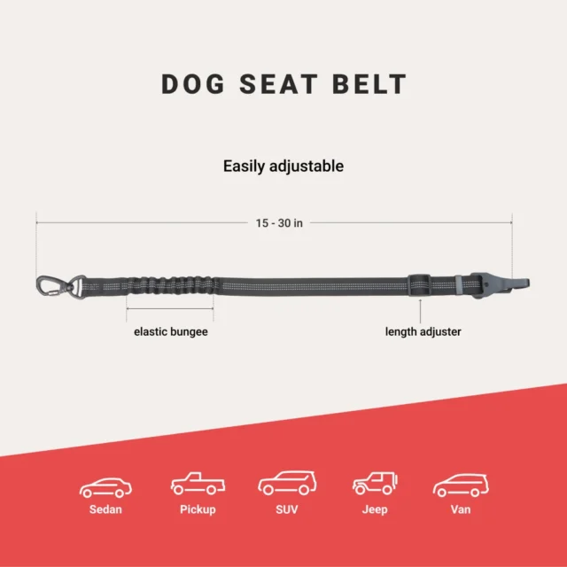 This seat belt has become an essential item for our road trips. The adjustable length is perfect for my big dog and the sturdy hardware ensures his safety. He seems comfortable with enough freedom to move around but also secure during sudden stops.