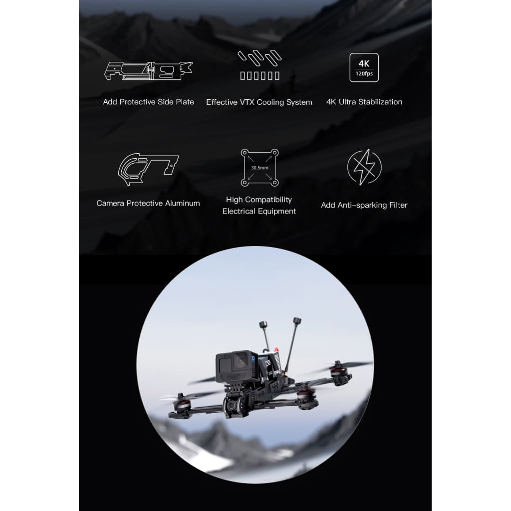 The inclusion of a personalized protective side plate has instilled a sense of security, alleviating any concerns about potential mishaps during flights. Paired with VTX cooling fins, the quadcopter maintains its composure even during prolonged journeys, ensuring consistent performance throughout. And let's not forget about the extensive range of camera options! It's like having a whole arsenal of creative tools at my disposal, enabling me to experiment with different angles and perspectives to capture truly captivating shots! Would recommend!