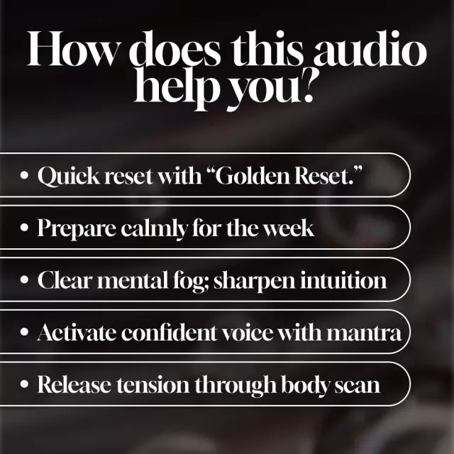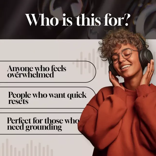 Anyone craving a gentle way to unwind between busy moments. People who want short, effective meditations for clarity, confidence, and stress relief. Perfect for those new to mindfulness or returning to a consistent practice.