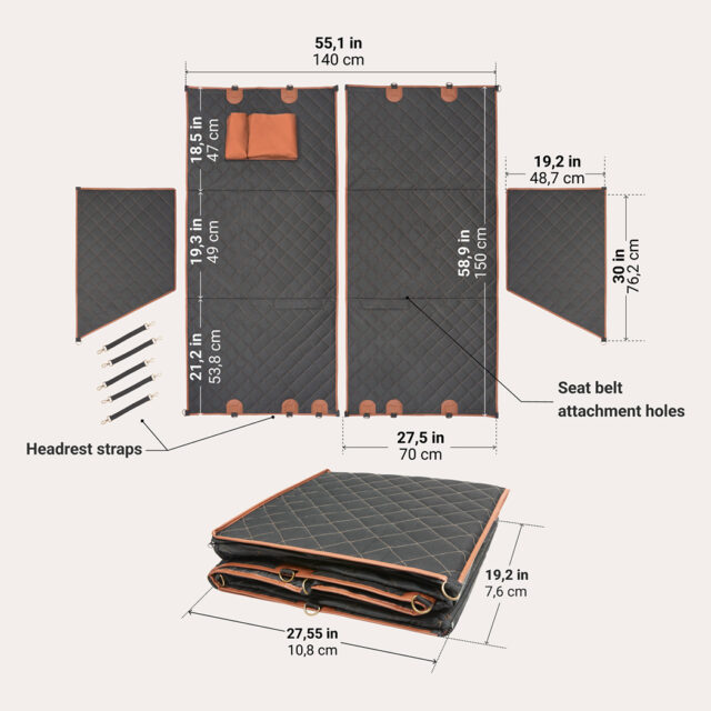 This hammock fits beautifully in my 2016 Honda accord. The material is top notch. The zippers are well sewn in and work perfectly with no issues. I did find one flaw though. The side panels that give you access to the door to enter should have been sown in the center and have a zipper installed on each side. This way it is protecting the side seat area. Having only one single zipper is frankly dumb. But I love your inclosed design idea. It’s just not perfect! When you upgrade with my idea you can just send me a new one and will call it even. Dg Wilson