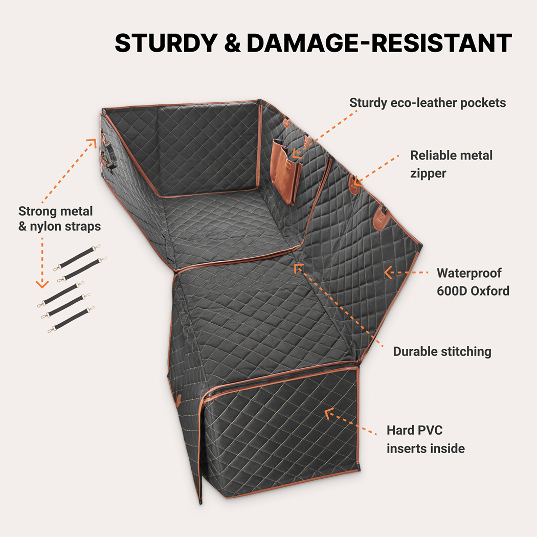 I was pleasantly surprised by the quality of this car dog hammock. The six-layer 600D Oxford cloth design is completely waterproof, which means I don't have to worry about my dog wet paws or any accidental spills ruining my car seats. Plus, it has a non-s bottom made from recycled PVC that keeps it in place even when we're on bumpy roads.