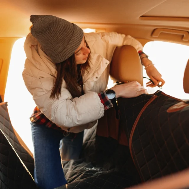 I can’t believe I used anything other than this one to protect my leather seats from my doggo! Plus she loves this one better than the last one! Keeps her toys from falling onto the floor of the vehicle. The underneath is grippy so the cover doesn’t slide around giving my dog more traction while inside. It’s water resistant and has a pouch where I like to keep her important things like collapsible water bowl and leashes.