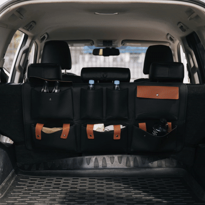 This organizer is a godsend. The eco-leather material makes it durable and waterproof, perfect for all my car storage needs.