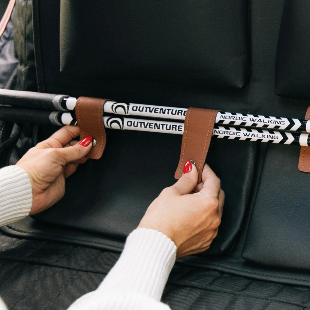 Finally an organizer that stays put while driving. Thanks to those solid textile headrest straps!