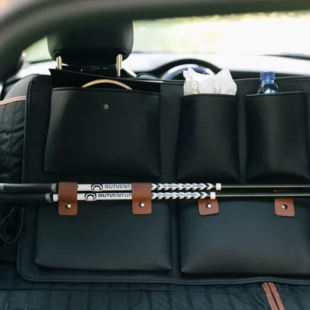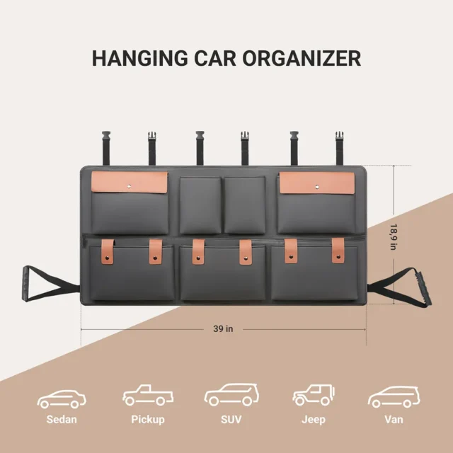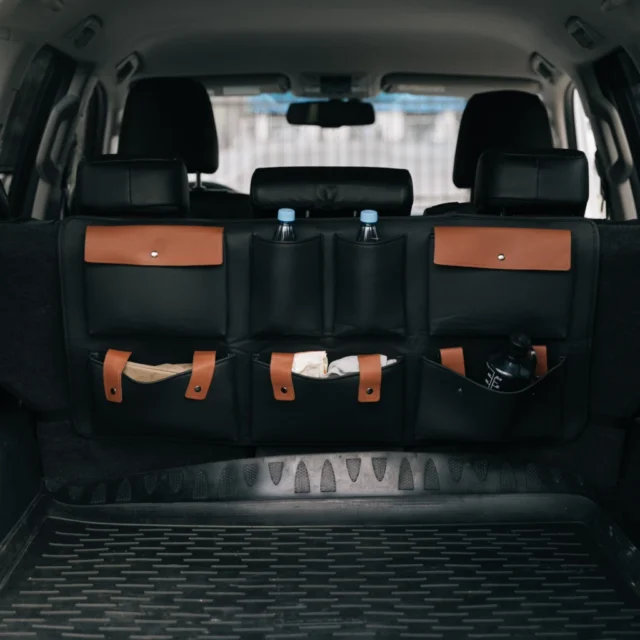 This product certainly lives up to its name as an excellent car trunk organizer! It features strong PVC buckles along with solid textile headrest straps ensuring everything stays intact even during long drives or bumpy terrains. Moreover, being made out of waterproof eco-leather makes cleaning super convenient – just wipe off dirt or liquids using a damp cloth!