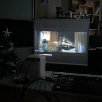 Came well-packed, the projector’s working like a charm. Still need to try out the USB and HDMI inputs. Lots of apps to choose from. The pic I got was with the lights dimmed down.