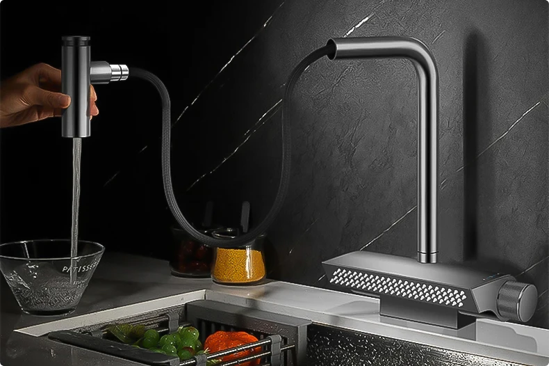 I recently upgraded my kitchen with this sleek faucet and it's been a game-changer. The modern design instantly added a touch of elegance to my space. The waterfall feature is absolutely mesmerizing, turning a simple task like washing hands into a soothing experience. The pull-out sprayer has made cleaning dishes and the sink area so much more efficient. It's solid and feels like it's built to last. Easy to install, it's been a standout addition to my kitchen