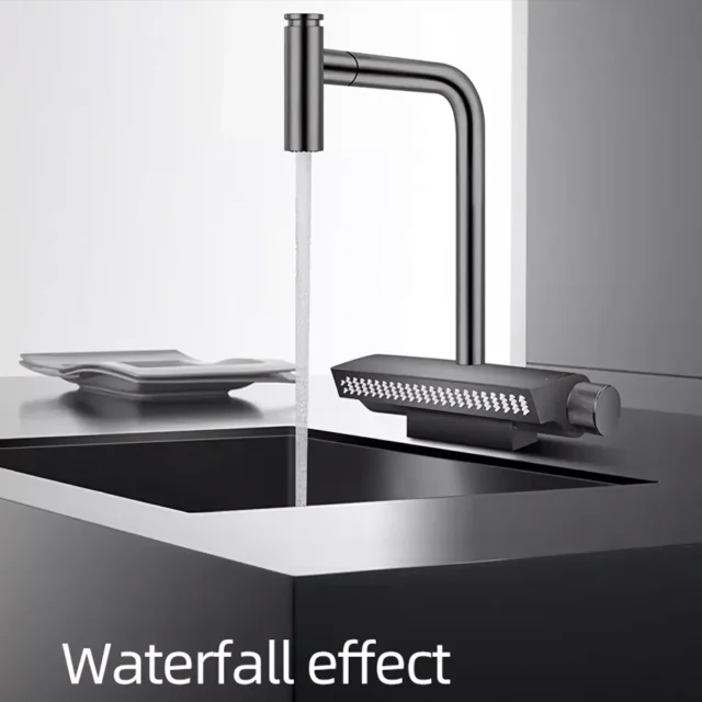 I recently upgraded my kitchen with this sleek faucet and it's been a game-changer. The modern design instantly added a touch of elegance to my space. The waterfall feature is absolutely mesmerizing, turning a simple task like washing hands into a soothing experience. The pull-out sprayer has made cleaning dishes and the sink area so much more efficient. It's solid and feels like it's built to last. Easy to install, it's been a standout addition to my kitchen