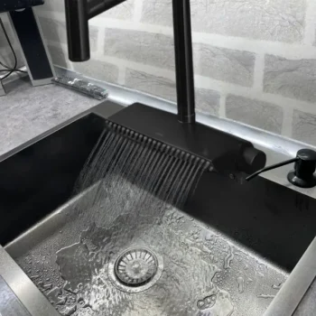 In my quest for the perfect kitchen upgrade, I stumbled upon this beautiful faucet, and it was love at first sight. The black finish and waterfall effect create a stunning visual impact, while the pull-out sprayer has made kitchen chores so much easier. It's built to last, with brass construction that feels sturdy and reliable. Installing it was simple, and it's been a dream to use. It's transformed my kitchen into a more stylish and functional space. I appreciate the attention to detail in its design and functionality. This faucet has not only met but exceeded my expectations. It's a fantastic addition to any kitchen, combining aesthetics with practicality