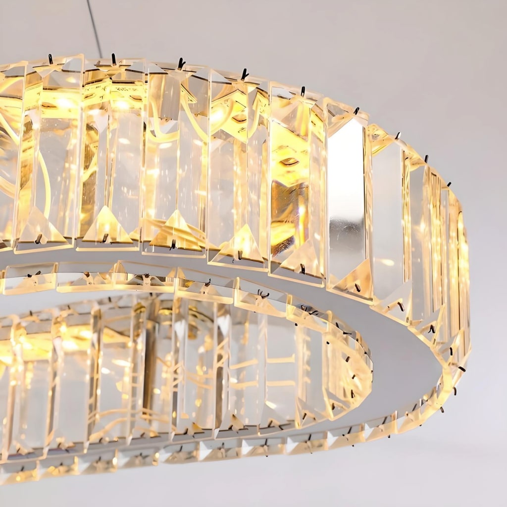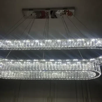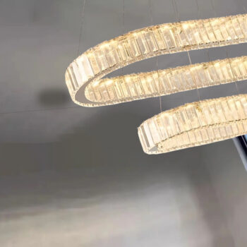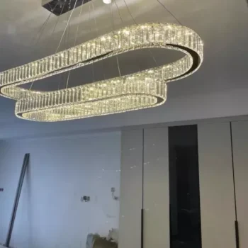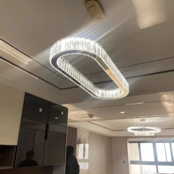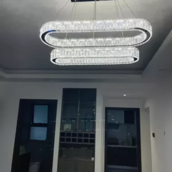 I'm thrilled with this unique, circular crystal chandelier. It was surprisingly easy to install and looks absolutely fantastic. It's a standout piece that enhances the aesthetic of any room it's placed in.