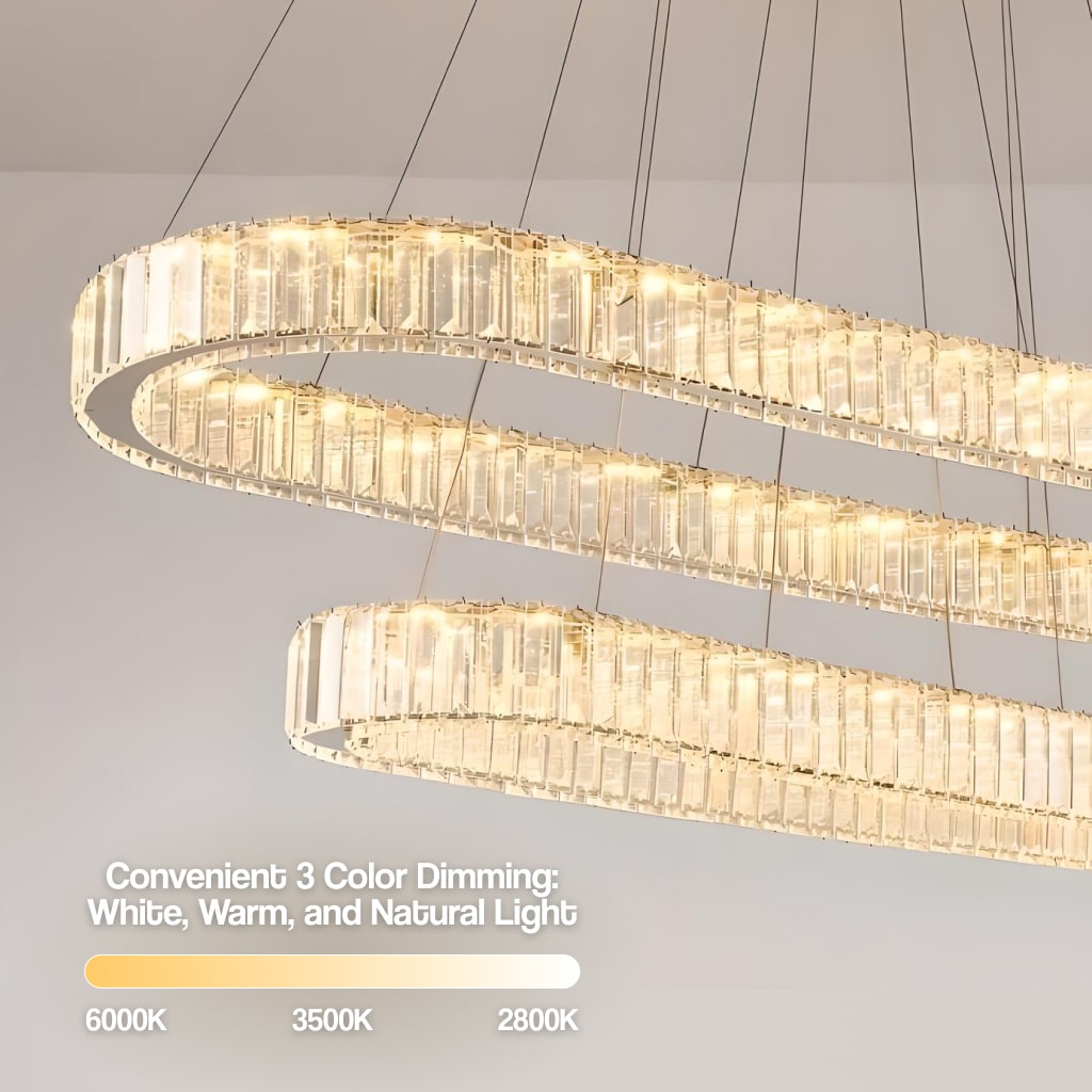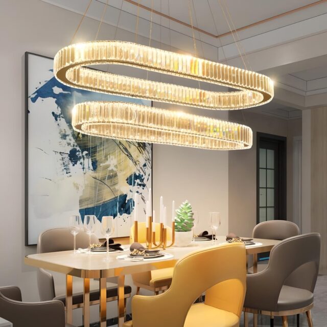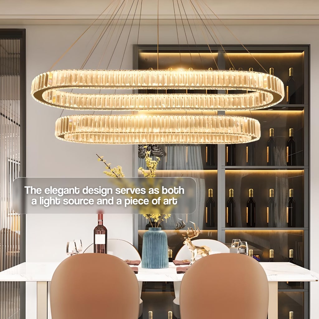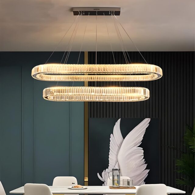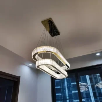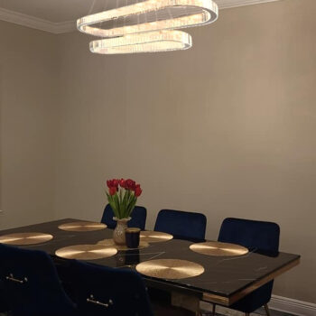 Bring a touch of sophistication to any room with our Contemporary LED Crystal Ceiling Pendant. Designed for modern living, this stylish fixture combines the allure of sparkling crystals with the sleekness of chrome, casting a warm and inviting glow in your dining room, kitchen, or bedroom. Its unique oval ring shape is not just an illumination source, it’s a statement piece that complements your home decor.