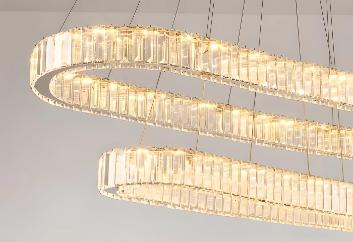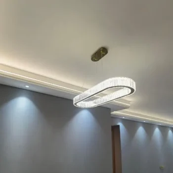 I am thoroughly impressed with this lighting piece, which has become a standout element in my interior design. Its unique oval and ringed design captures the eye, offering a contemporary flair that complements various decor styles. The dimming feature adds versatility, enabling mood lighting that can be tailored to any occasion. It exudes a soft, radiant light that enriches the room's atmosphere, making it feel more welcoming and luxurious. The craftsmanship is top-notch, with durable materials that promise longevity. This fixture is not just a light source; it's a statement of style and elegance.