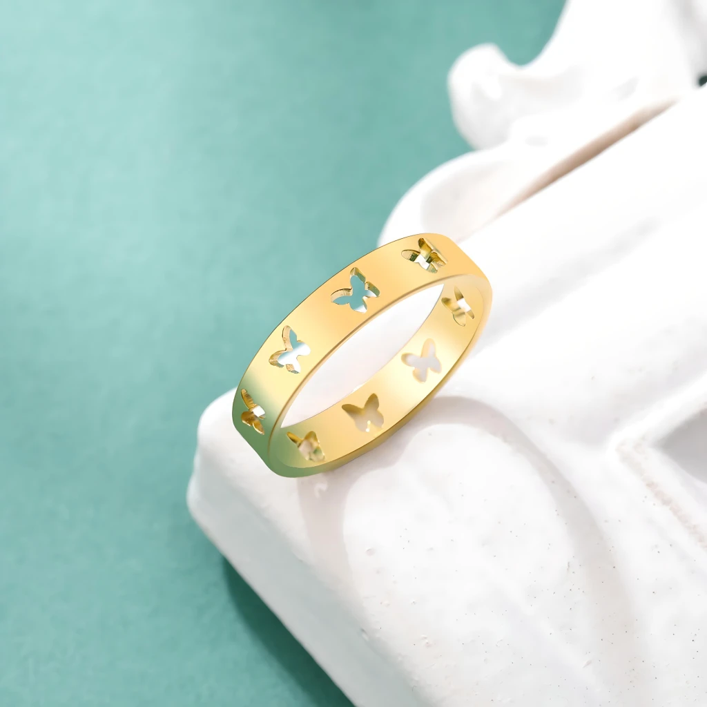 Stainless steel is an excellent choice for jewelry due to its durability and hypoallergenic properties. Our Hollow Butterfly Ring offers several benefits:
