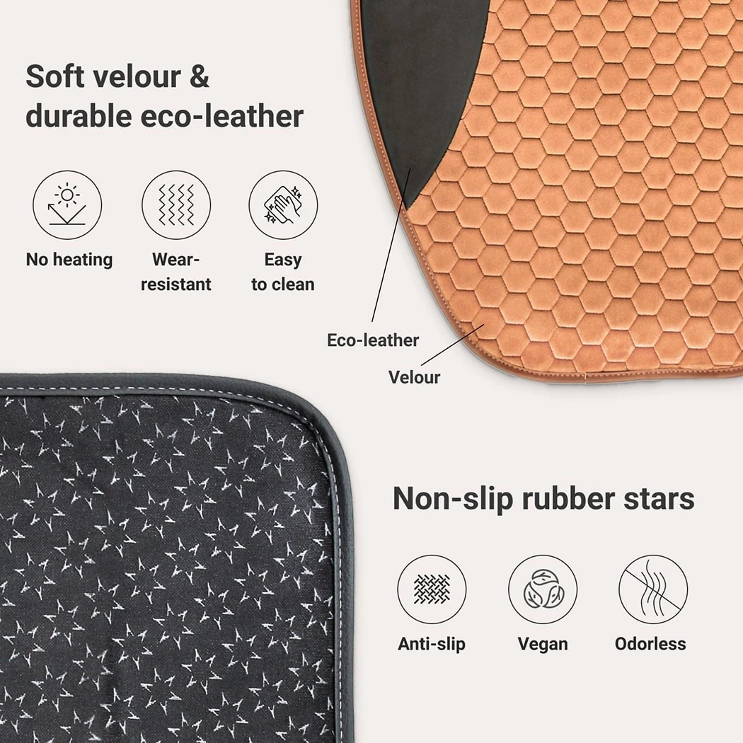 The comfort and style these seat covers provide are second to none. They're made from soft velour and smooth eco-leather, which not only feels great but also adds a touch luxury to my car's interior. The star-shaped rubber dots on the bottom ensure they stay firmly in place during drives, making for a much more enjoyable ride.