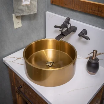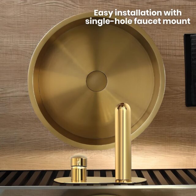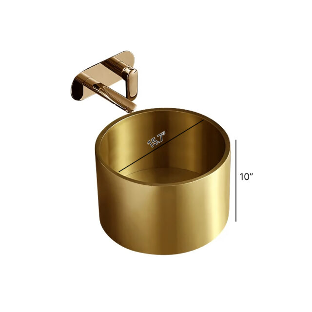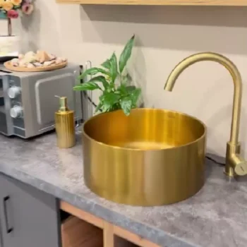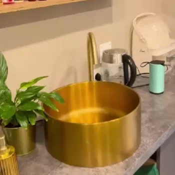 Best utilized in the settings of a luxurious hotel, a chic villa, or a stylish home bar, this gold countertop sink serves as both a functional fixture and a piece of art. Its round elegance is perfect for those moments of self-care, elevating the simple act of washing up into a serene experience. Whether it’s for a quick hand wash or a leisurely hair shampoo, this basin stands ready to cater to your every need.