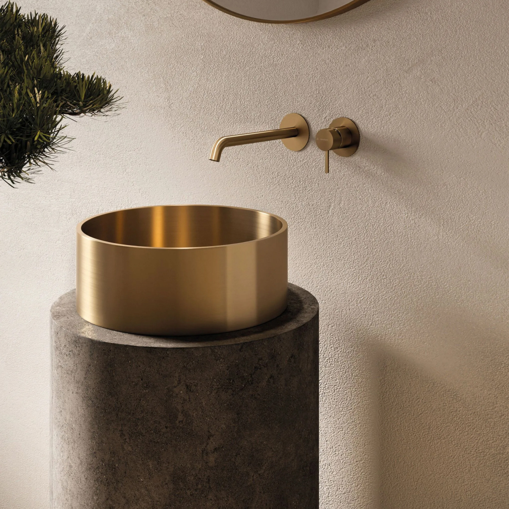 The gold finish and round design of this basin add a touch of timeless elegance to my decor, blending functionality with artistry in my bathroom space.