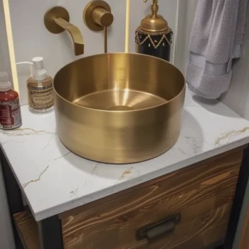 During our bathroom renovation, we chose this basin over quartz, complementing it with brass fixtures. It truly makes a bold statement and adds a stunning touch.