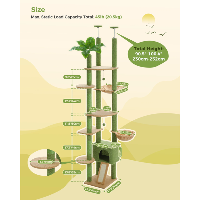 My kitties are absolutely smitten with this cat tree (and the box it came in, of course 😂). Thanks to the tension rod top it's more than equipped to handle all the roughhousing they can dish out. Despite being 8 and 10 pounds respectively, they fit snugly into the hammock without any issues. They were practically climbing all over it before I even had a chance to finish setting it up! And let's not forget how charming the cactus theme and colors are. Dipper and Phoenix give this cat tree a rating of 5+ stars each! If you're on the fence about getting one, trust me—take the plunge! You won't regret it!