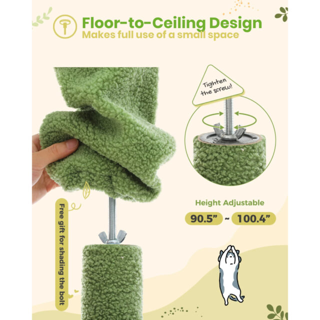 Don’t wait to bring joy and adventure into your cat’s life with our Green Cactus Multi-Level Adjustable Cat Tower. It’s more than just a cat tree; it’s a commitment to your cat’s happiness and well-being. Order now and watch as your cats enjoy endless hours of fun and relaxation. Your feline friends deserve the best, and with our cat tower, that’s exactly what they’ll get.