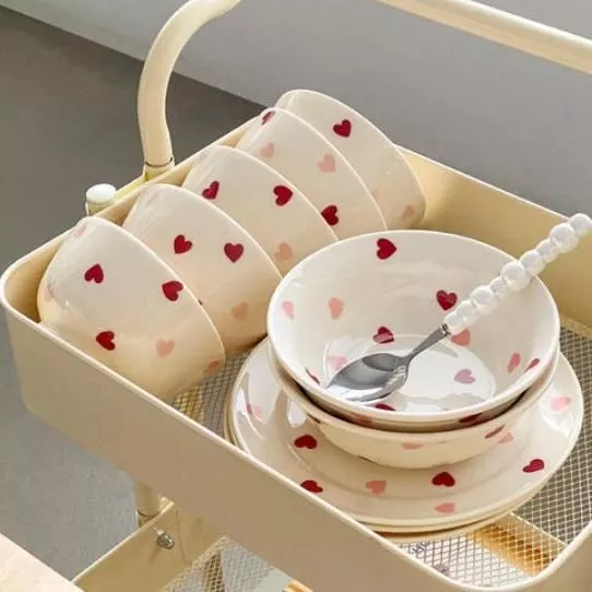 Aside from its undeniable charm and quality, this dinnerware set stands out for its unique heart-shaped design, making it a memorable and warm gift for anyone you cherish. The intricate geometric pattern and fresh style resonate with anyone who appreciates the beauty in details, making every meal a special occasion.