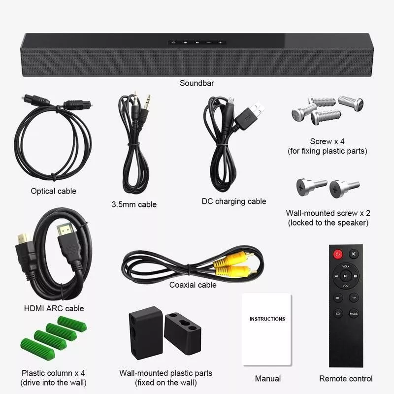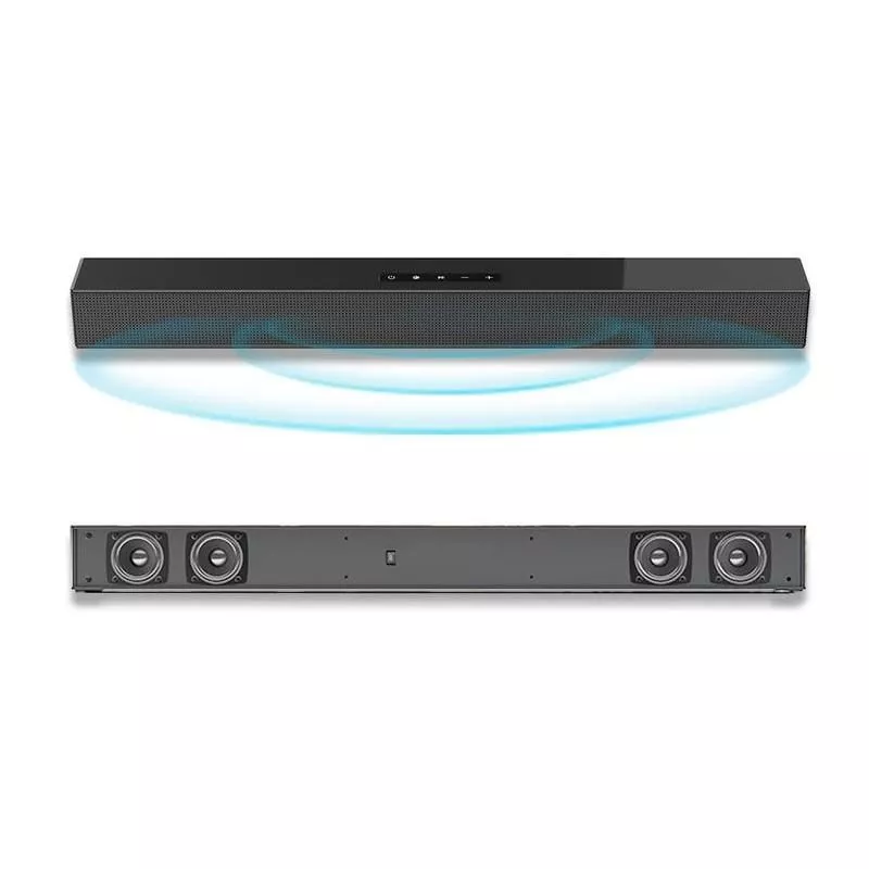Our soundbar stands out with its advanced Bluetooth 5.0 technology, ensuring a stable, high-quality wireless connection. The sleek design complements any home décor, while its compact size makes it a perfect fit for any room. With no intelligent personal assistant or unnecessary frills, it focuses on delivering the best sound experience without complications.