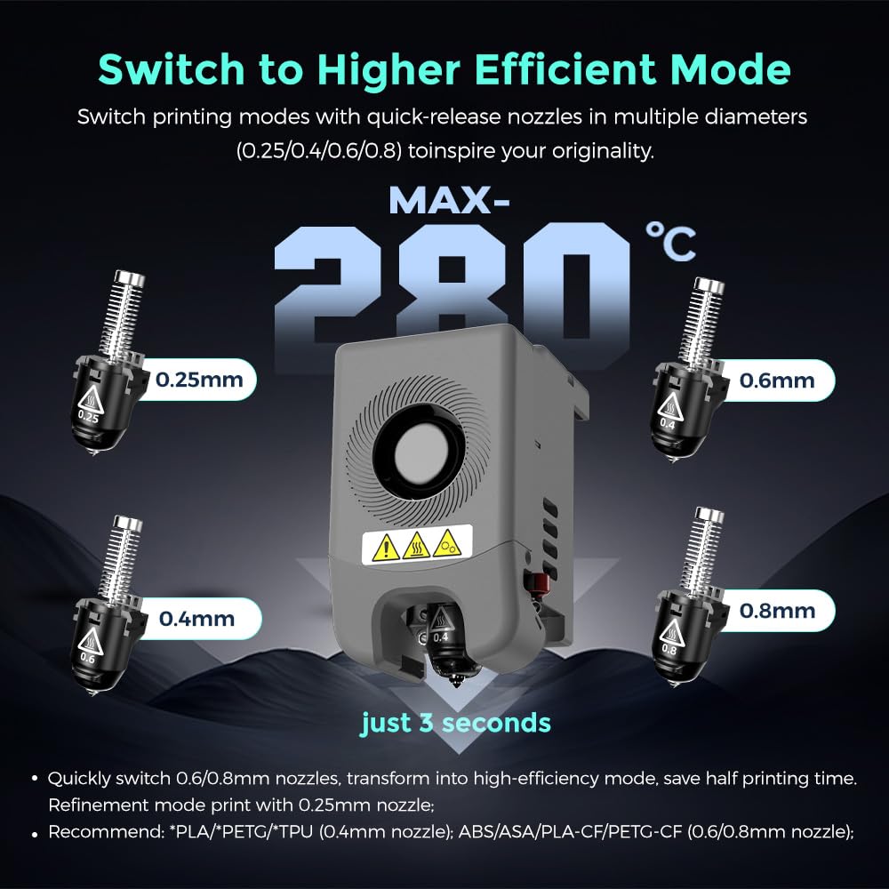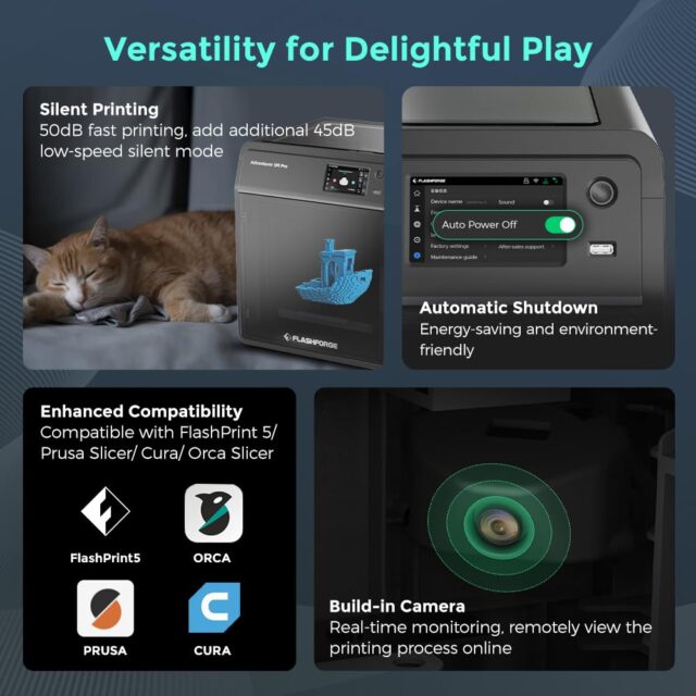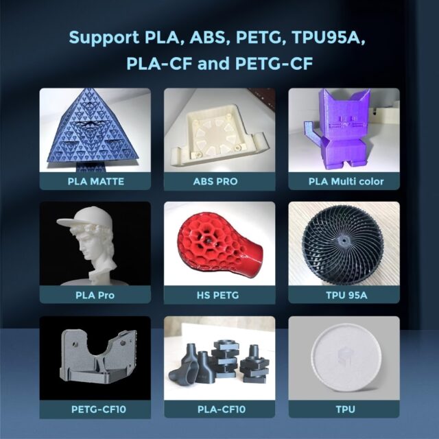 What sets this printer apart is its combination of speed, precision, and user-friendly features. The maximum print size of 220*220*220mm accommodates a wide range of projects, while the variety of compatible filaments, including PLA, PETG, TPU, and ABS, offers flexibility in material choice. The printer’s silent operation ensures a disturbance-free environment, and the automatic shutdown feature enhances safety and energy efficiency.