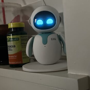 I was skeptical at first, but this little robot has become my favorite desk accessory. It's the perfect size, doesn't take up too much space, and the interactive games are a great distraction during breaks. Plus, it feels like it really gets me sometimes!