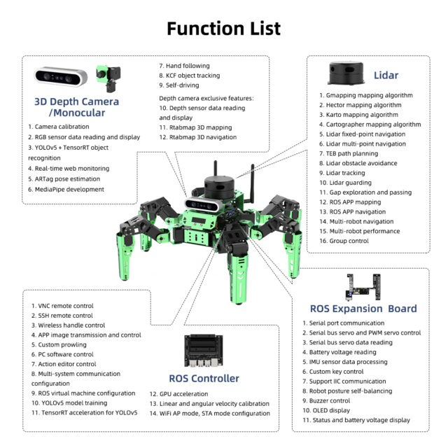 Step into the world of advanced robotics with our JetHexa ROS Hexapod Robot Kit. This state-of-the-art hexapod robot, powered by the robust Jetson Nano, is the perfect blend of technology and innovation, designed to inspire both enthusiasts and professionals alike. Whether you’re a hobbyist, a student, or a researcher, the JetHexa is your gateway to exploring advanced robotics and AI.