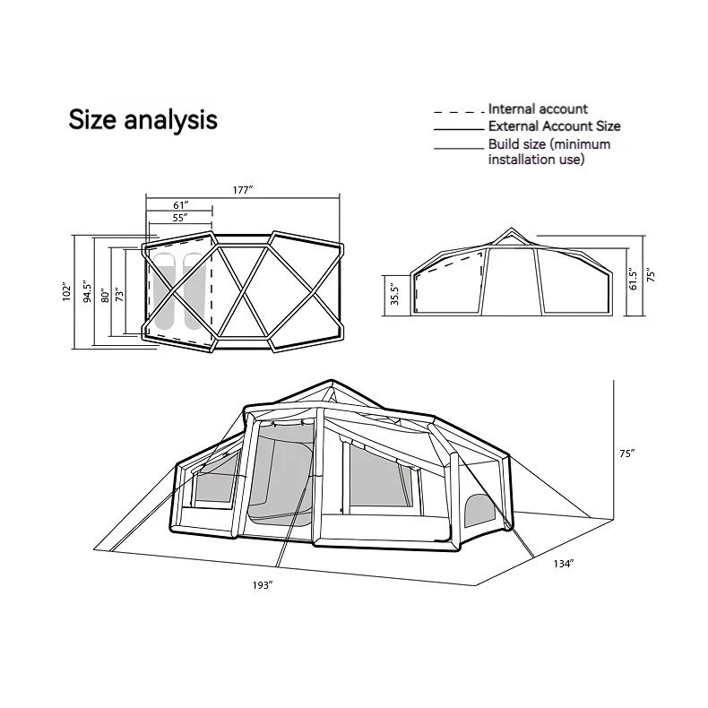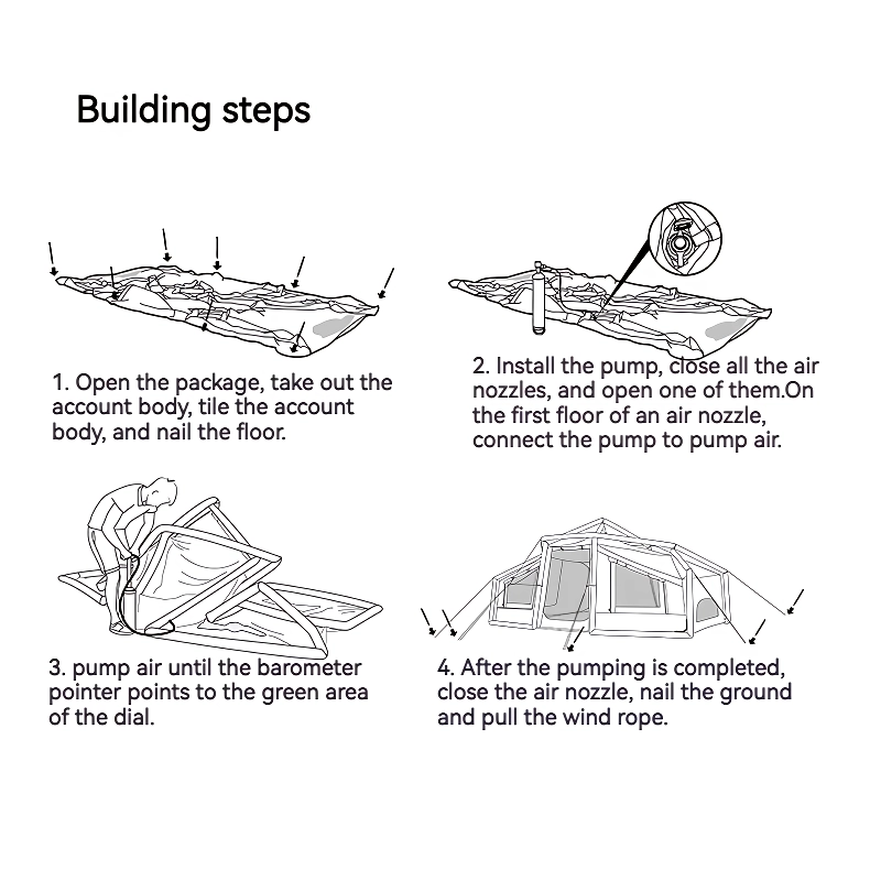 Our Lightweight Inflatable Tent is perfect for three-season camping, offering comfort and protection in spring, summer, and autumn. It’s ideal for beach trips, camping in the wilderness, or even backyard sleepovers. The tent’s spacious interior makes it suitable for family vacations, while its sturdy construction ensures it can withstand the elements. Whether you’re an experienced camper or trying it out for the first time, this tent will enhance your outdoor experience.