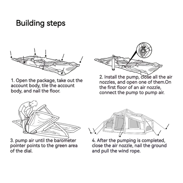 What sets our tent apart is its unique combination of durability, convenience, and comfort. The innovative inflatable design means no more struggling with poles and complicated instructions. Its robust materials ensure it stands up to the challenges of outdoor use, while its spacious and comfortable interior makes it a cozy retreat after a day of adventure. With this tent, you’re not just buying a shelter; you’re investing in countless memorable experiences.