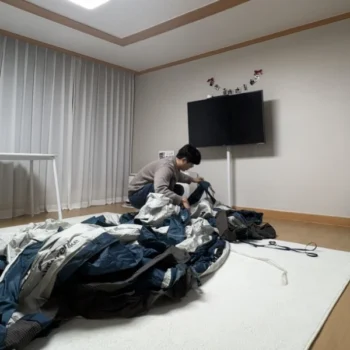 I tried it out, but there are no particular problems or concerns so far. It's cute and easy to use without complaint about its shape or size, and it's easy to set up and remove with just one touch. The ceiling was empty, so I thought it would be cold, but the stove alone was warm enough.