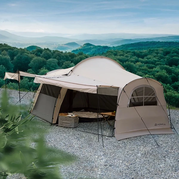 This tent stands out with its exceptional quality and thoughtful design. The two-room layout is perfect for our family, offering privacy and convenience. The fabric and pole materials are top-notch, providing a secure and comfortable shelter. Its ease of setup and weather resilience make it an ideal choice for any outdoor adventure