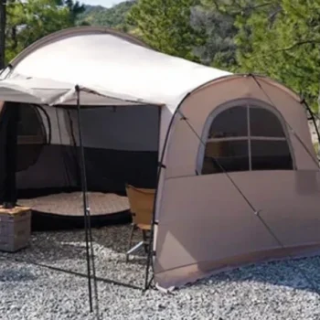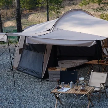 This tent stands out with its exceptional quality and thoughtful design. The two-room layout is perfect for our family, offering privacy and convenience. The fabric and pole materials are top-notch, providing a secure and comfortable shelter. Its ease of setup and weather resilience make it an ideal choice for any outdoor adventure