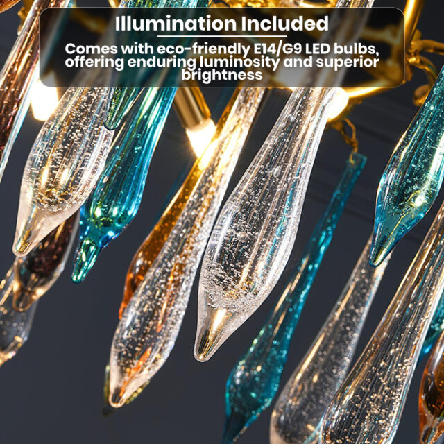 • Light Source: Energy-efficient E14/G9 LED bulbs included, ensuring longevity and brilliance.