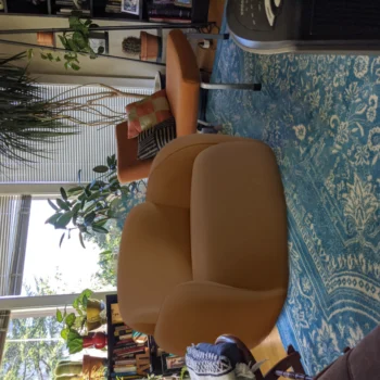 Just moved into my first apartment and I'm so excited to have found this chair! The orange color is soft, and the chair itself is incredibly comfy. I'd definitely recommend it to anyone looking for a stylish and comfortable seating option.