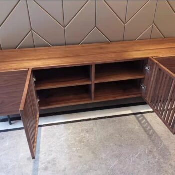 The retractable drawer and wooden strip doors are not just functional; they add a touch of creativity to the design, enhancing my room's ambiance. This TV stand marries utility with beauty in the best way possible.
