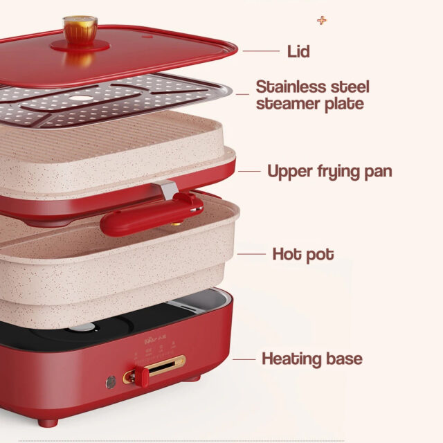 Our Multicooker stands out with its innovative design that combines multiple cooking functions in one appliance. Whether you need to fry, steam, or cook a hot pot, this appliance can do it all. The stepless temperature control ensures your food is cooked perfectly every time, while the non-stick surface means you spend less time cleaning and more time enjoying your meals. Additionally, the foldable handle design makes it easy to store, making it a perfect fit for any kitchen size.