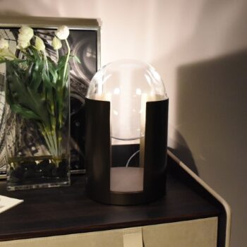 The lamp’s eye-catching design features high-quality glass in cognac or transparent colors, complemented by a sturdy iron base. The LED lighting technology ensures long-lasting, energy-efficient illumination. Its unique shape and elegant glass shades make it a statement piece that effortlessly enhances the style of your room.