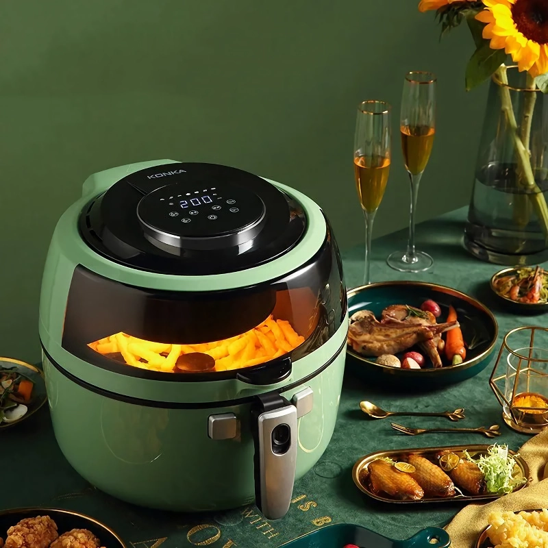 From the first use, this air fryer impressed me with its large capacity, perfect for gatherings and family meals. The oil-free cooking feature has been a boon for our health, reducing fat without compromising taste. The efficiency of the cooking process, thanks to its advanced technology, ensures even and speedy cooking. It's also incredibly user-friendly, with straightforward controls and easy cleanup, thanks to the non-stick surface. Moreover, its sleek design has added a modern touch to my kitchen.