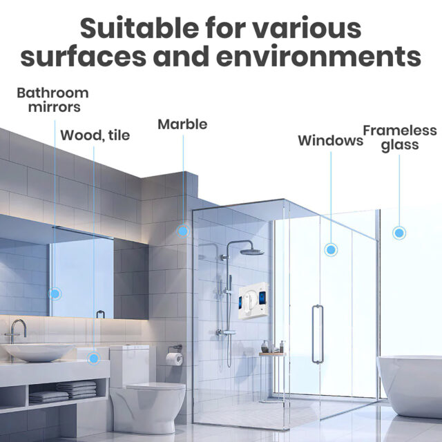 This window cleaning robot is ideal for a variety of glass surfaces, including bathroom mirrors, tile walls, and both framed and frameless windows. Whether it’s routine maintenance or a deep clean, our robot handles it all efficiently, leaving you with pristine windows.